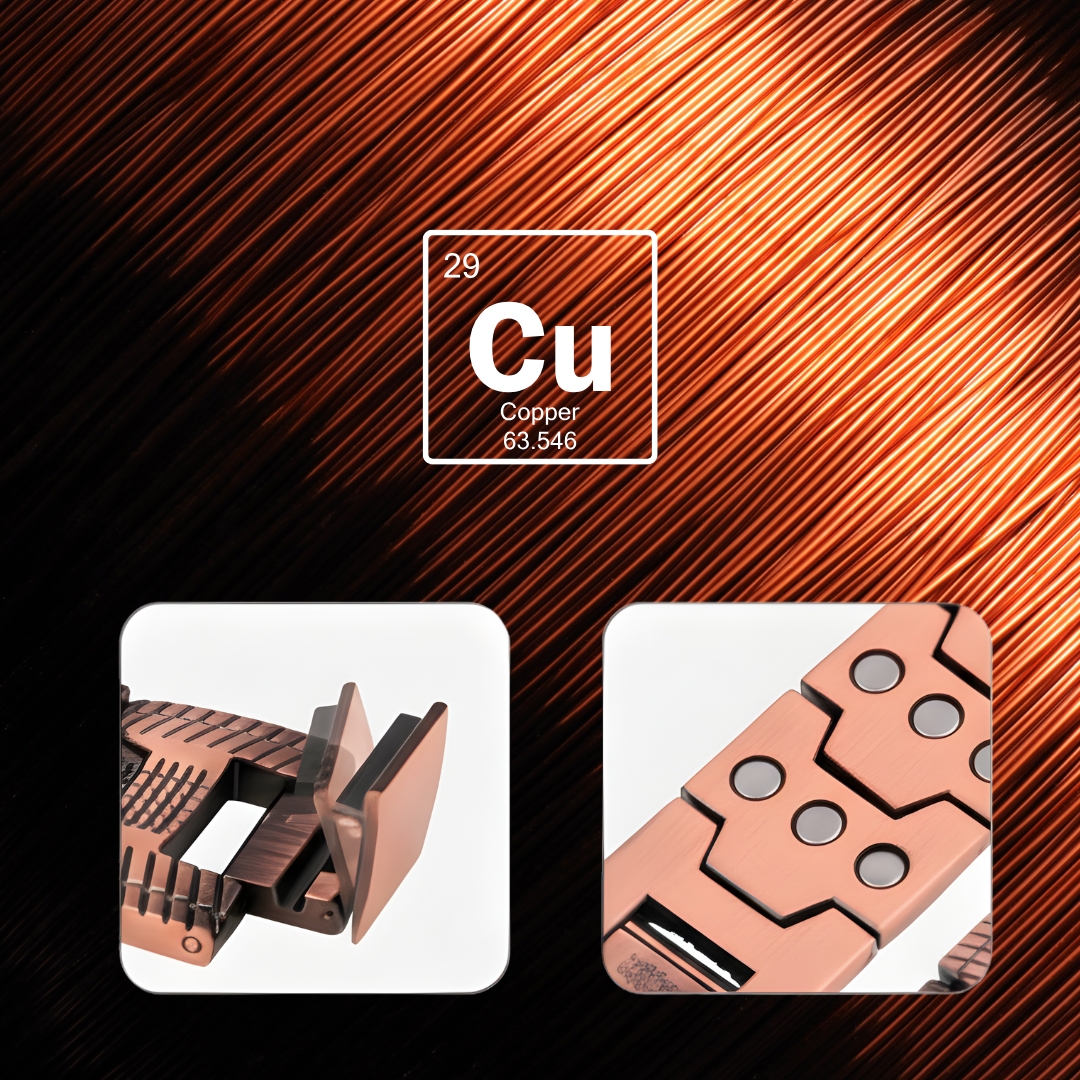 Chaque bracelet Kitorm™ est fabriqué en cuivre massif certifié, poli à la main et testé pour une tolérance cutanée parfaite. Les aimants haute intensité conservent leur puissance dans le temps, pour une efficacité durable.